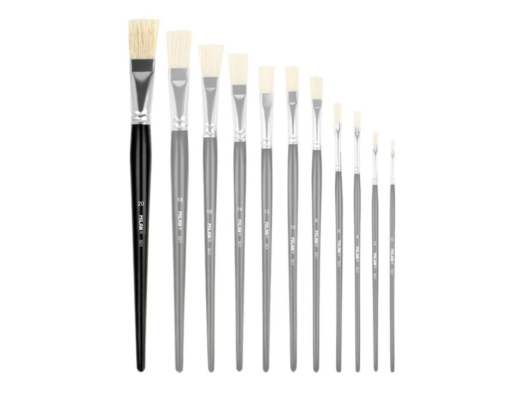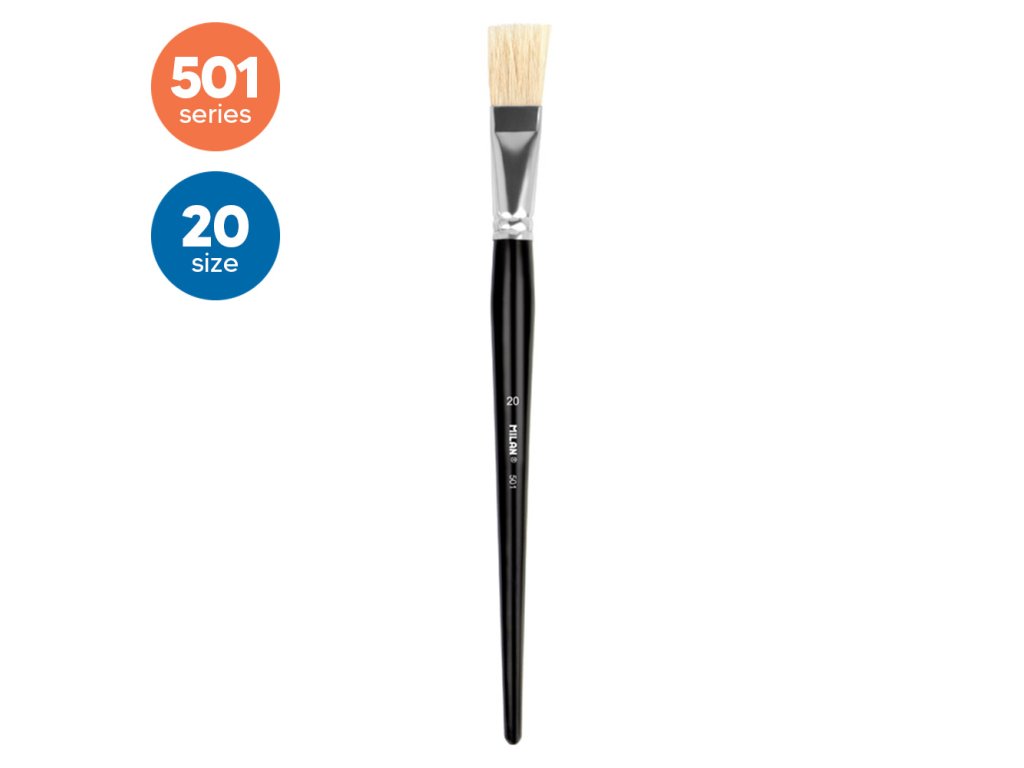 Plochý štetec č. 20 z prírodných prasačích štetín, s čiernou lakovanou rukoväťou z dreva so strieborným bezošvým kovaním, je vďaka odolnosti a pevnosti vlasu vhodný na viacúčelové použitie. Určený pre maľovanie na najrôznejšie povrchy a druhy techník, pri ručných prácach a dekoráciách pre umelecké farby s rôznou textúrou. Dĺžka vlasu 32,4mm, šírka 19,7mm, hrúbka 4,9mm.Dodatočné parametre