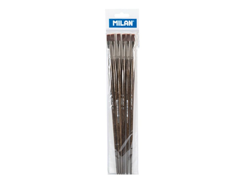 Plochý štetec MILAN 822 s dlhou ergonomickou drevenou rukoväťou. Orechová lakovaná povrchová úprava a niklová objímka. Zloženie: syntetické štetiny (vlákna O 0,20 mm). Vhodný na maľovanie olejom a akrylom.Priemer štetín: 7,3 mm. Dĺžka štetín: 14,4 mm. Štetec: 301 mm.Dodatočné parametre