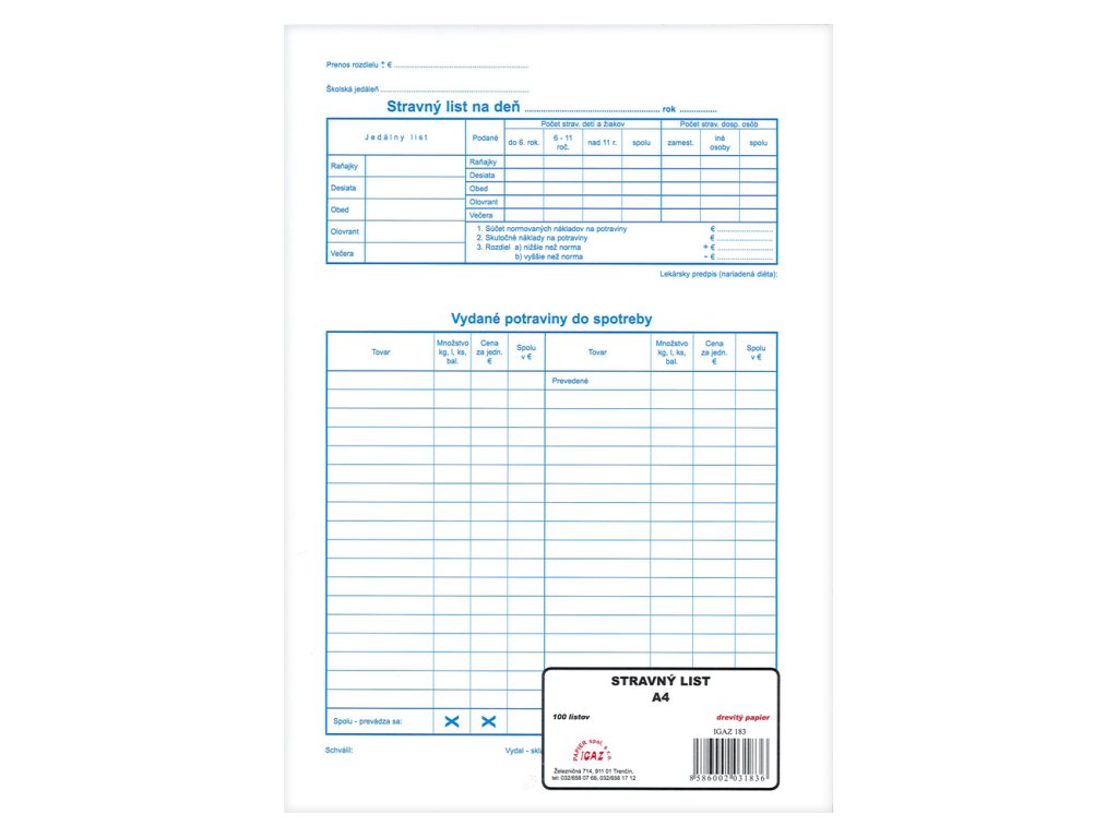 Stravný list A4 - na deň (183)Dodatočné parametre