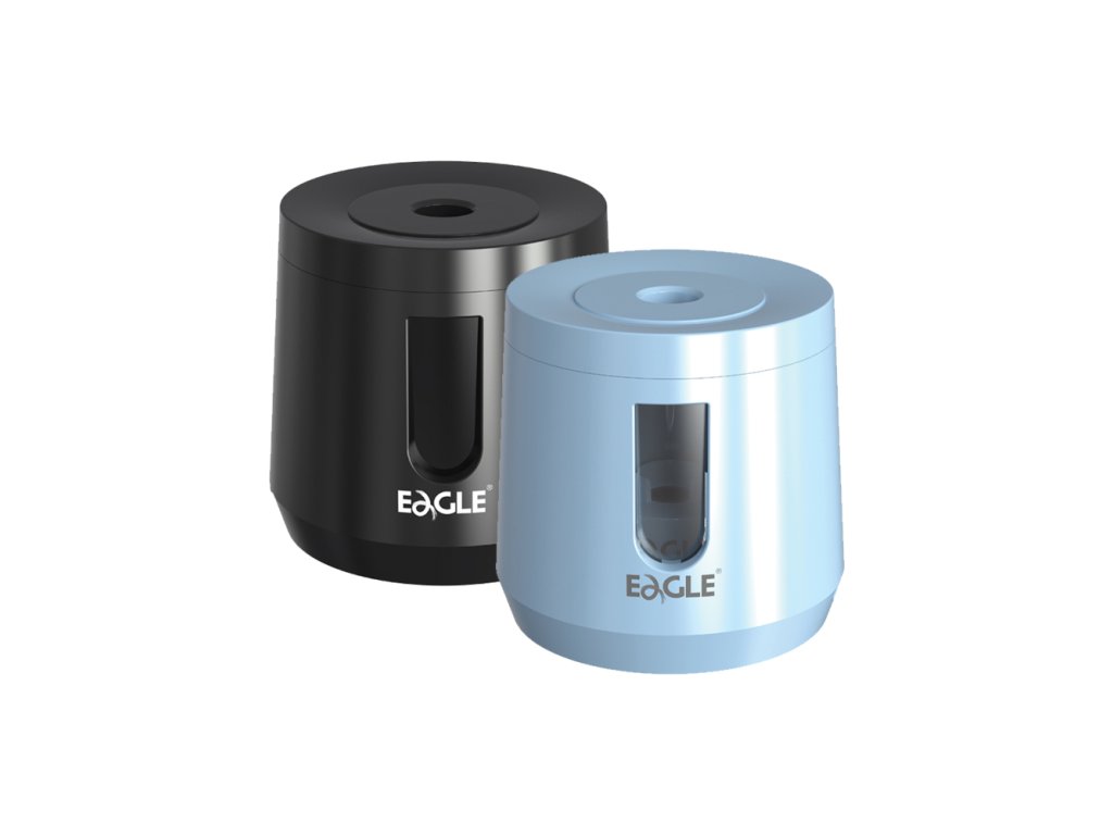 Elektrické strúhadlo na farbičky / ceruzky v dvoch farbách: čiernej a modrej.