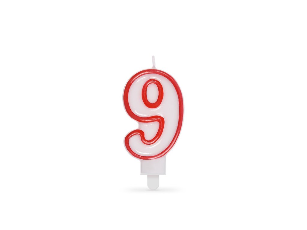 Číslová sviečka o výške 7,5 cm. Číslo "9"Dodatočné parametre