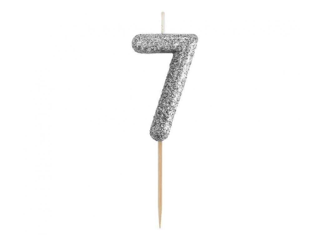 Sviečka tortová B&C - číslica "7" glitter čierna 11 cm