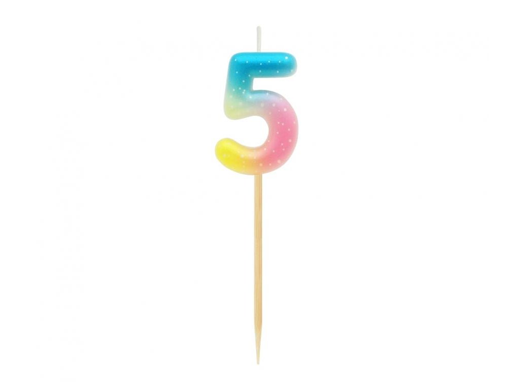 Sviečka tortová - číslica "5" pastel ombre 11 cm