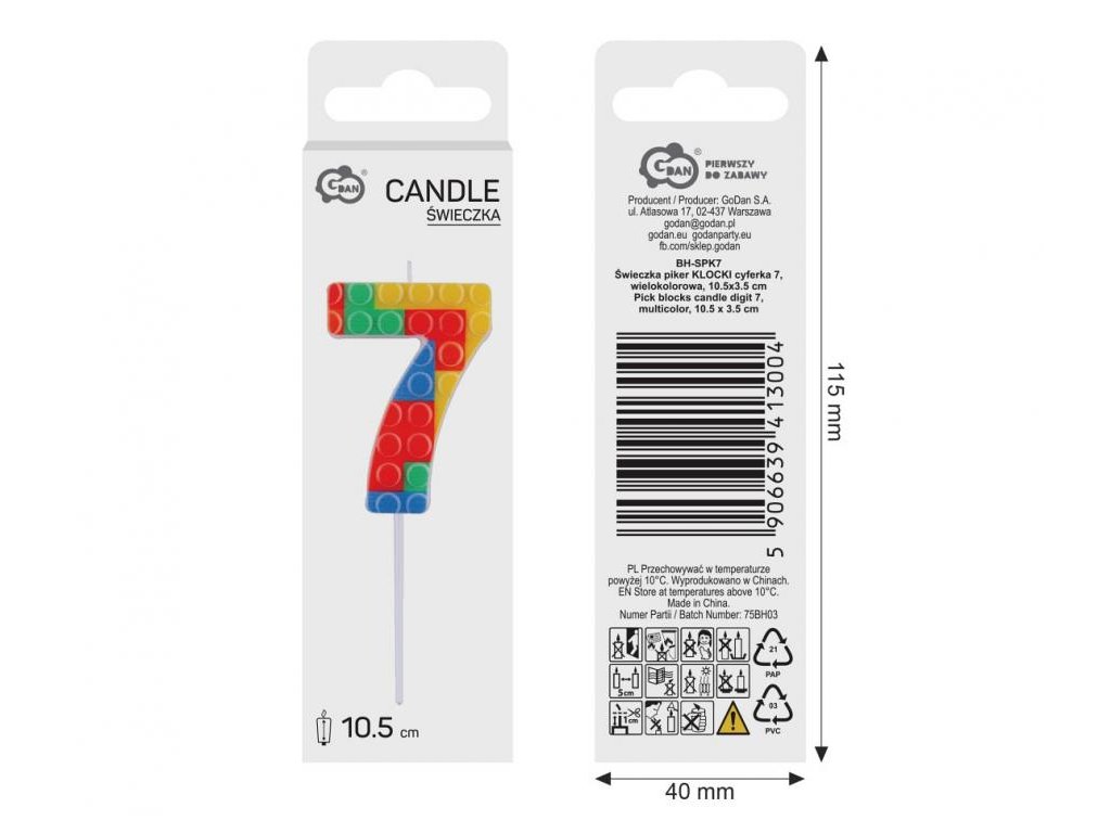 Sviečka tortová - číslica "7" Blocks 10,5 cm