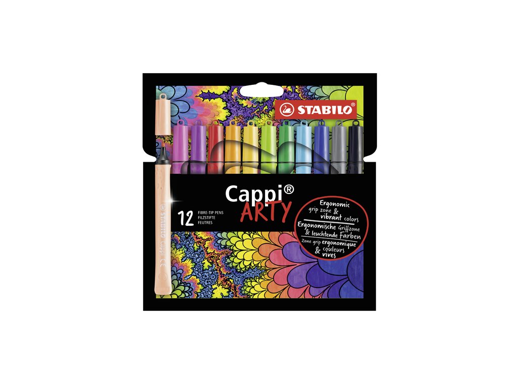 So STABILO Cappi 12 ks ARTY sú vrchnáčiky z fixiek ktoré zmizli, minulosťou. Vďaka šikovnému krúžku na vrchnáčik sa dajú vrchnáčiky na fixy jednotlivo navliecť a už sa nestratia. Vďaka svojej ergonomickej zóne uchopenia a špeciálnemu tvaru tuby leží tento fix perfektne v ruke a zároveň sa nemôže skotúlať zo stola. Vďaka svojej 24-hodinovej ochrane pred vyschnutím je ideálny na hodiny tvorivej práce.Dodatočné parametre