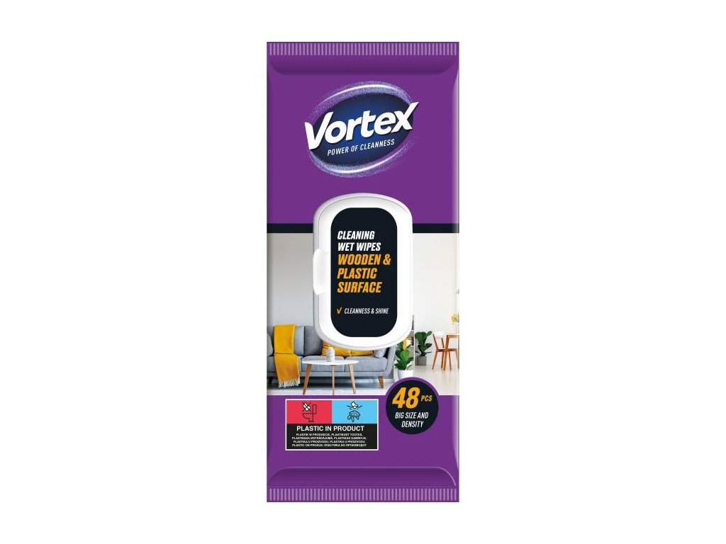 Vlhčené utierky na drevo a plast Vortex 48 ks (19x18,5cm)