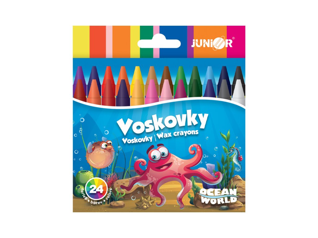 Voskovky klasického vyhotovenia v jasných, sýtych farbách, ktoré vyhovejú rozmanitým potrebám detí. Voskovky umožňujú hladké a komfortné kreslenie. Výborne farbia na papier, kartón, kameň a sú určené pre školákov aj predškolákov. Voskovky sú netoxické. Balenie obsahuje 24 kusov.Dodatočné parametre
