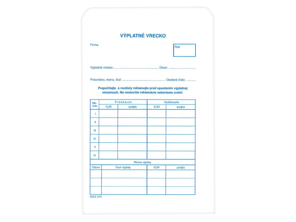 Výplatné vrecko 12 x 18,5 cm - C6 (75)