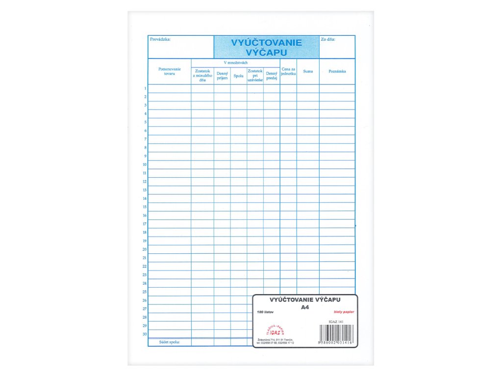 Vyúčtovanie výčapu A4, 100 listov (141)