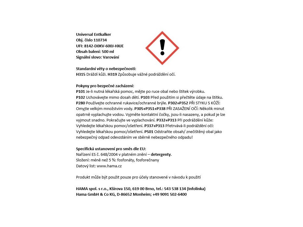 - taktiež vhodné na odstraňovanie vodného kameňa z nerezových nádob, obkladačiek, sanity