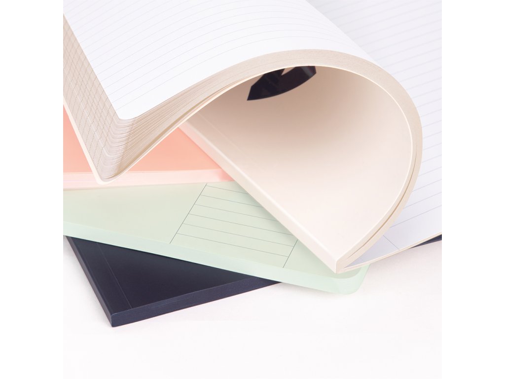 - zaguľatené rohy zápisníka