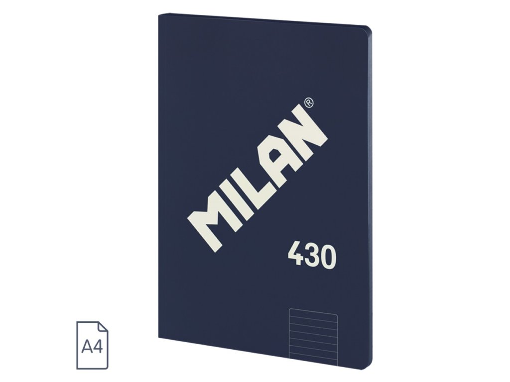 Zošit A4 lepený s pružným obalom a logom MILAN.