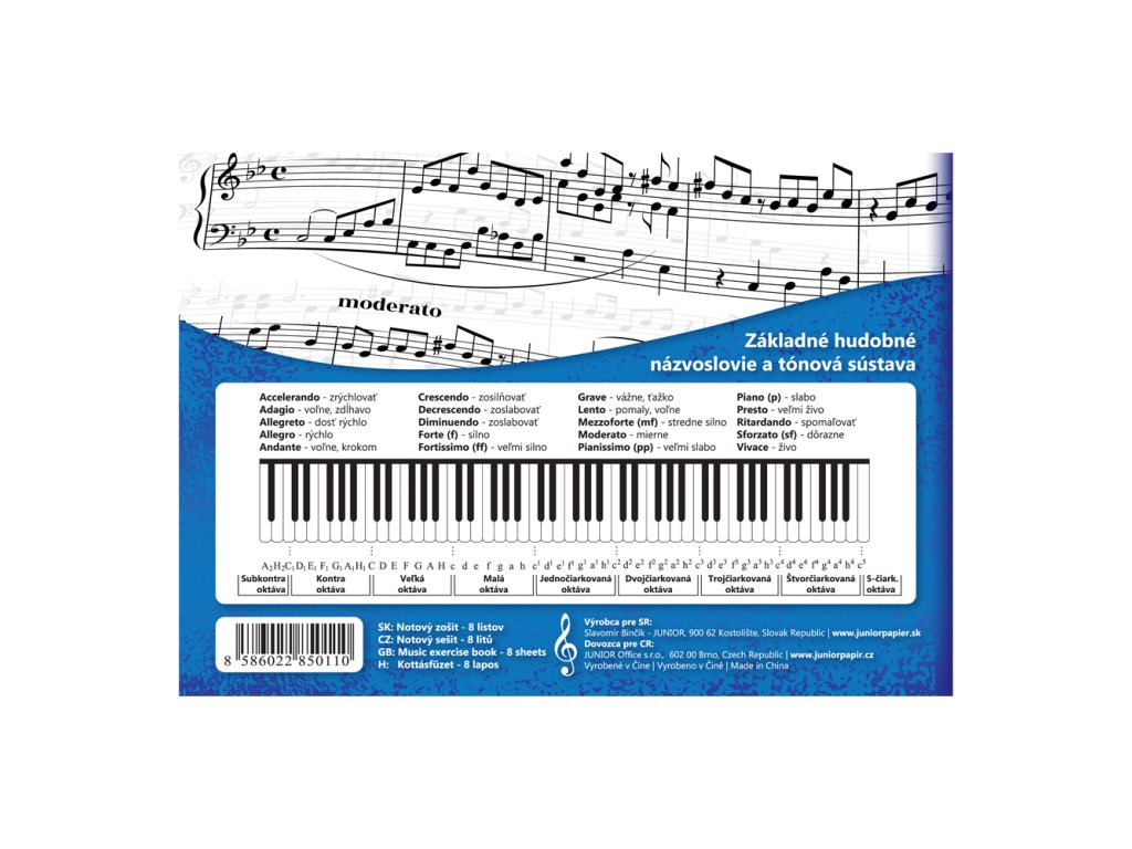 Zošit notový je vhodný na hudobnú výchovu, prípadne pre žiakov / študentov navštevujúcich umeleckú školu.