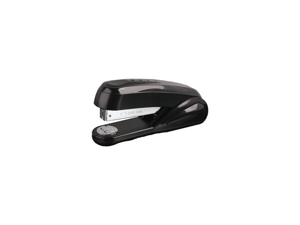 Plastová zošívačka v čiernom prevedení, výkon zošitia až do 20 listov, vhodná náplň spiniek 24/6 a 26/6. Typ zošita flat clinch - šetrí až 25% miesta ako bežný typ zošitia. Dĺžka ramena: 51 mm.Dodatočné parametre